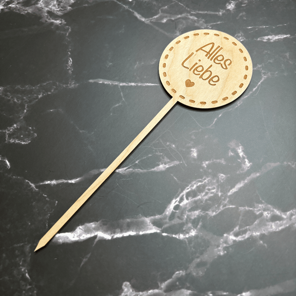 Ein kleines Detail mit großer Wirkung: Unser Blumenstecker aus Holz mit der Gravur „Alles Liebe“ ist die perfekte Ergänzung für Blumensträuße, Geschenke oder Pflanzenarrangements. Ob zum Geburtstag, Valentinstag oder einfach nur so – dieser Stecker sagt mehr als tausend Worte.