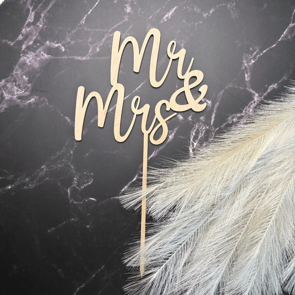 Caketopper „Mr & Mrs“ aus Holz – elegante Dekoration für die Hochzeitstorte