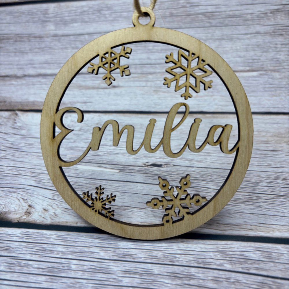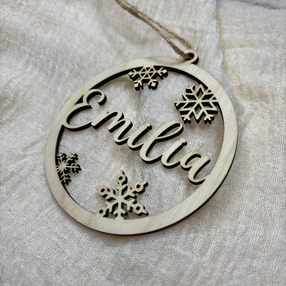 Diese dekorativen Holzornamente sind ein ganz besonderes Highlight für deinen Christbaum, Adventskranz oder als Geschenkbeigabe. Jedes Ornament wird individuell mit dem gewünschten Namen ausgeschnitten, sodass es zu einem einzigartigen, persönlichen Schmuckstück wird.