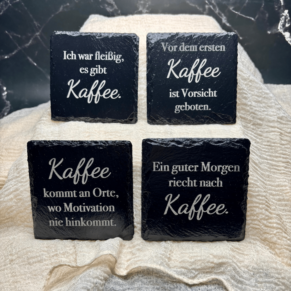 ✅ 4er Set Schieferuntersetzer mit Kaffeesprüchen